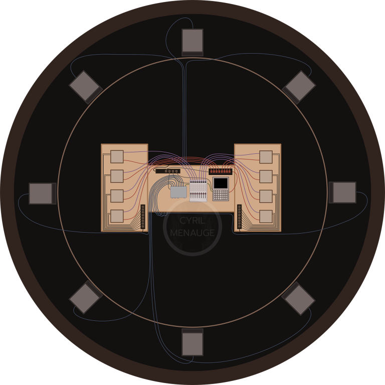 The Acousmachines are modular musical machines controlled with MIDI and created for the automated interpretation of electroacoustic octophonic pieces. They compose the Electromechaphonium imagined and realized by me as part of the last year of the electroacoustic composition program at the Pantin Conservatory (France).